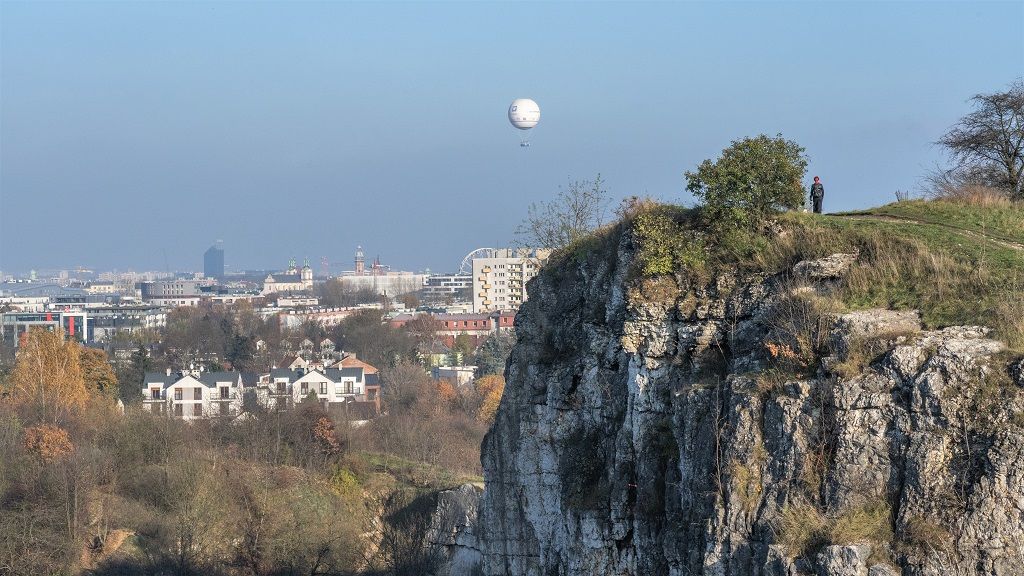 From the cliffs, Kraków stretches out in a wide, open panorama. You can see the city’s layout from above — districts blending into each other, with the Old Town forming a subtle focal point in the distance.