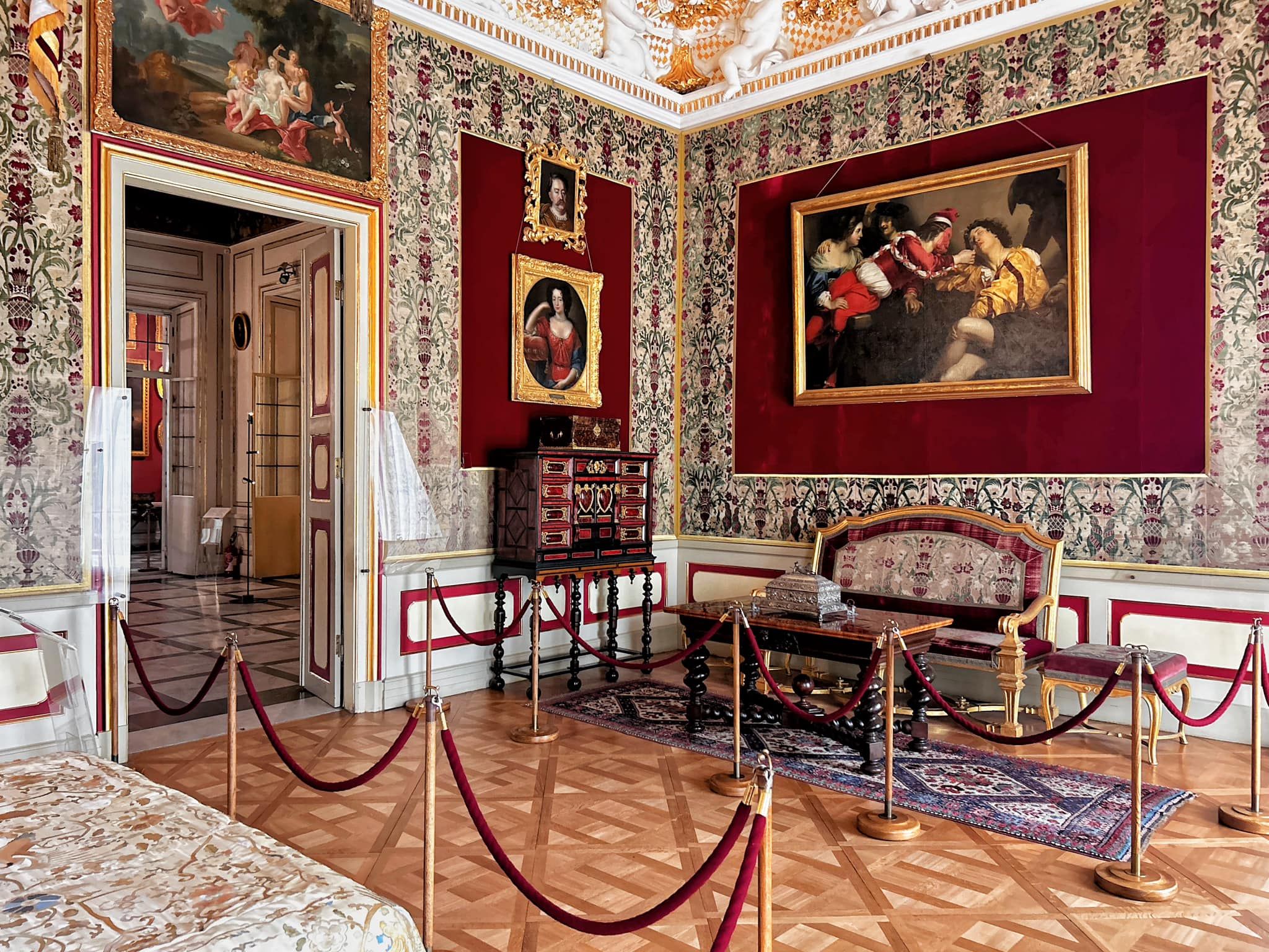 Visitors can explore royal apartments, ceremonial halls, and themed cabinets filled with paintings, decorative objects, and historical collections. The interiors reflect both court life and intellectual interests, including art, science, and antiquities gathered by later aristocratic owners.