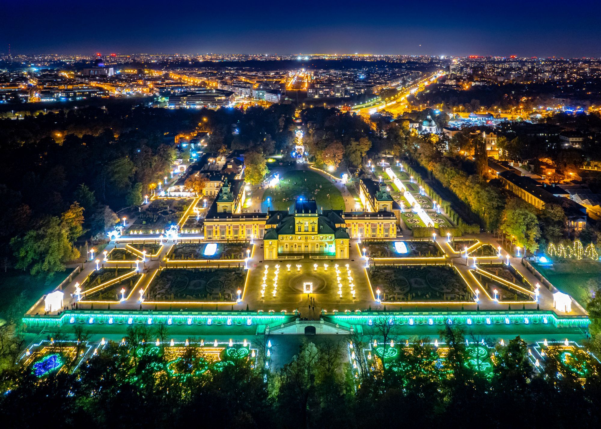 In summer, the park offers a peaceful escape with shaded paths and lakes. During winter, the Royal Garden of Light transforms the surroundings into an illuminated exhibition with artistic installations synchronized with music. Nearby, visitors can also explore the Poster Museum located in the former riding hall.